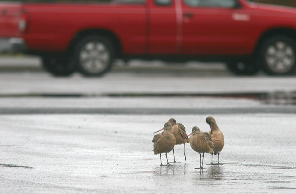 4 Marbled Godwits roosting in the Hatfield Marine Science
