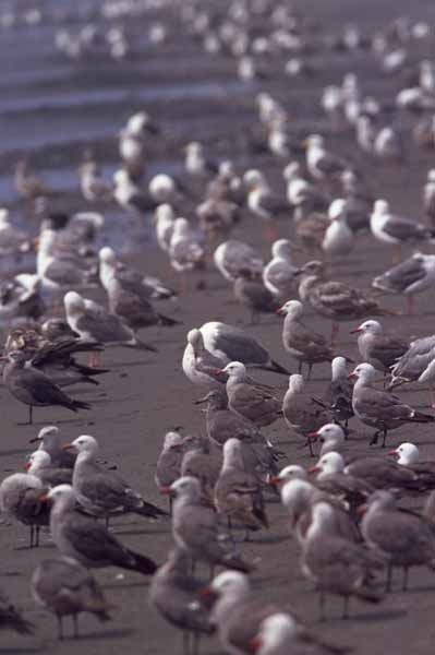 This flock of Heermann's and Western Gulls was photographed on the southern Oregon coast in July 2002. |